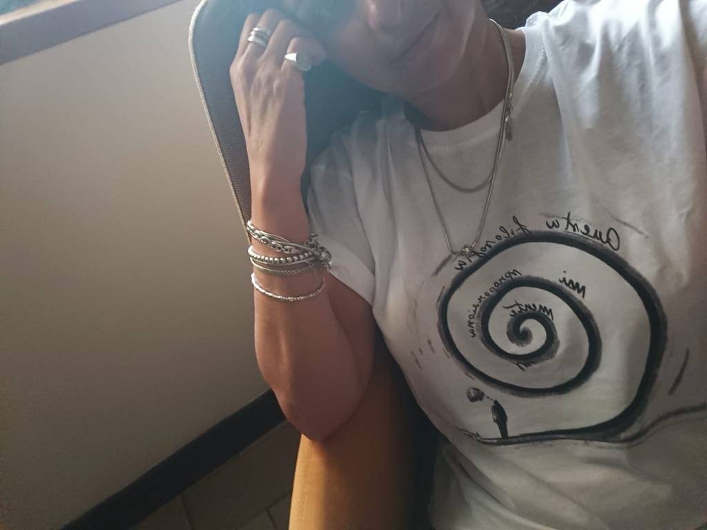Tutto è nato da una mia foto in cui indossavo una maglia con su scritto “Questa filosofia mi sproporziona la mente”, parole di un ristretto diventate un manifesto. Corredavo l’immagine con una riflessione in cui sostenevo come tali parole manifestassero ciò che è possibile realizzare in un contesto nel quale la restrizione può diventare strumento di Libertà se si mette in moto il pensiero e si dà spazio all’ascolto. Facevo infatti riferimento ad un percorso di pratica filosofica (P4C) che all’interno di un carcere non è una semplice attività rieducativa ma molto molto di più.